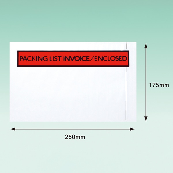 ”PACKING LIST ENCLOSED”の印刷が入っています。A5サイズがそのまま入ります。完全密封タイプの為、貼ってから伝票が落ちる心配がございません。箱、または束にJANコードやバーコードの貼付はございません。●入数:100枚
