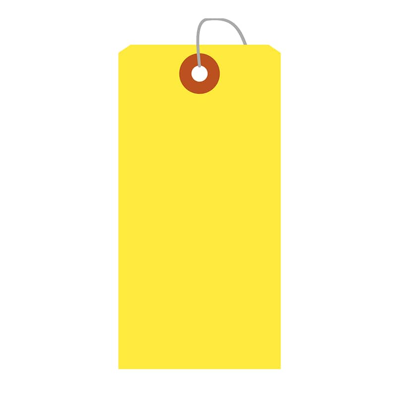針金が付いた荷札です。一穴タイプで、サイズは縦90mm×横45mmの中サイズです。黄色無地で様々な内容を書き込むことができます。他のカラー荷札と合わせて使用することで荷物のグループ分けなどにも活用いただけます。針金部分を商品に括り付けて荷物の識別や表示タグ、値札として使用します。荷札では定番の上質紙。安価ですが耐水性はないので屋内使用向け。引っ張っても破れにくい紙ハトメ加工あり。2000枚箱入りの大容量の業務用タイプです。●針金付(約100mm)