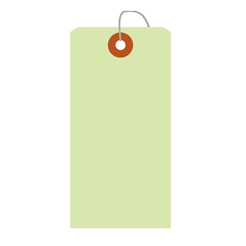 針金が付いた荷札です。一穴タイプで、サイズは縦90mm×横45mmの中サイズです。黄緑色無地で様々な内容を書き込むことができます。他のカラー荷札と合わせて使用することで荷物のグループ分けなどにも活用いただけます。針金部分を商品に括り付けて荷物の識別や表示タグ、値札として使用します。荷札では定番の上質紙。安価ですが耐水性はないので屋内使用向け。引っ張っても破れにくい紙ハトメ加工あり。2000枚箱入りの大容量の業務用タイプです。●針金付(約100mm)