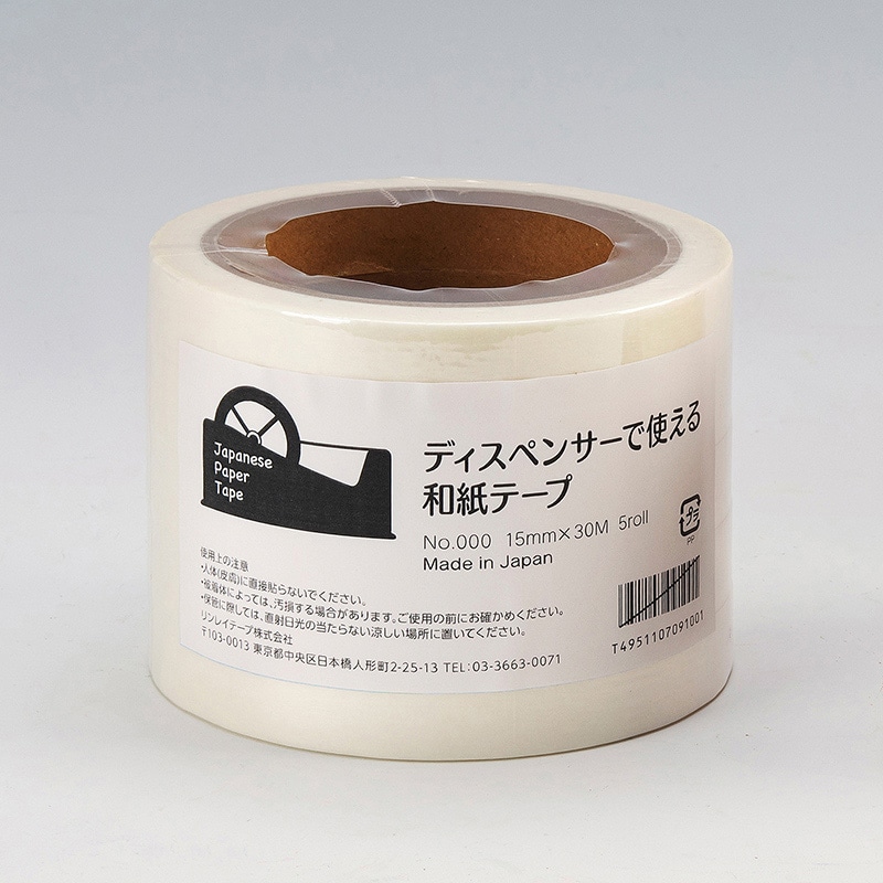 リンレイテープ ディスペンサーで使える和紙テープ 5巻パック 15×30 #151W ホワイト 1パック(ご注文単位20パック)【直送品】