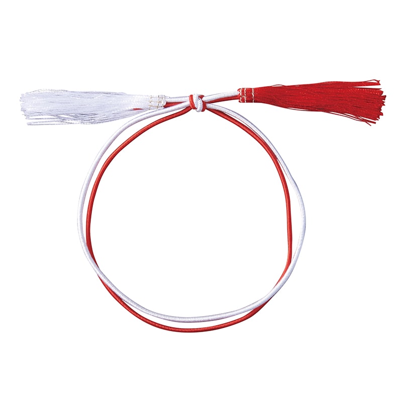 紅白の房付きで豪華に祝い事を引き立てられます。天然ゴムを使用しているので伸縮に個体差がございます。