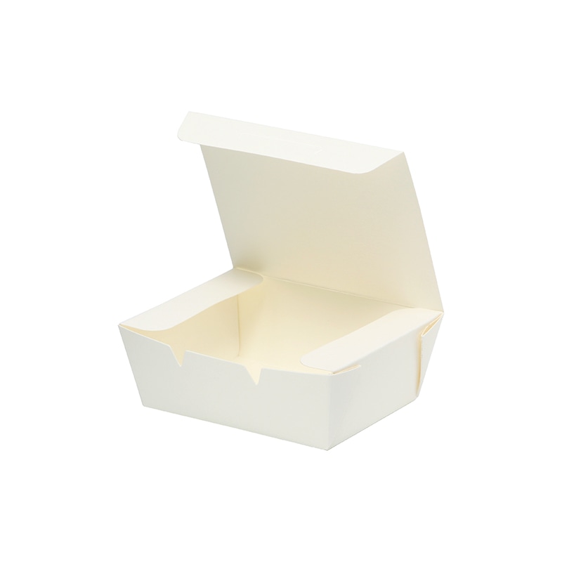 サンドイッチ、サラダ、サイドメニューなどのカジュアルテイストのメニューに最適な紙ボックスです。●電子レンジ使用可 ●耐熱温度:110℃ ●容量:約170g ●入数:50枚
