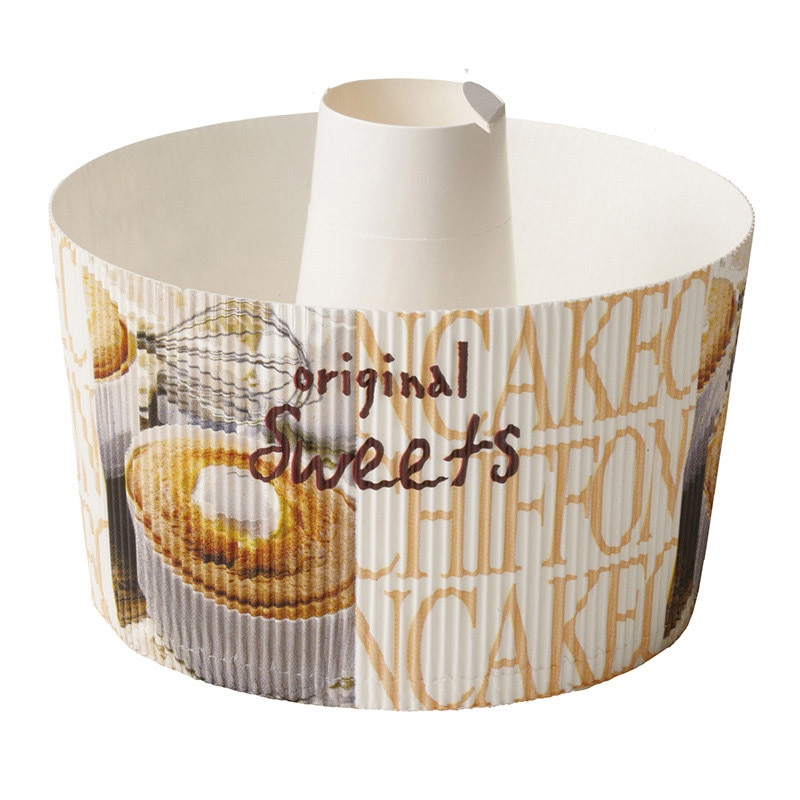 シフォンの焼型といえばこれ。焼成後、そのまま販売していただけます。●電子レンジ使用可●オーブン使用可●耐水性:なし●耐油性:なし●耐熱温度:180℃●容量:1650cc●入数:10枚※フタ別売