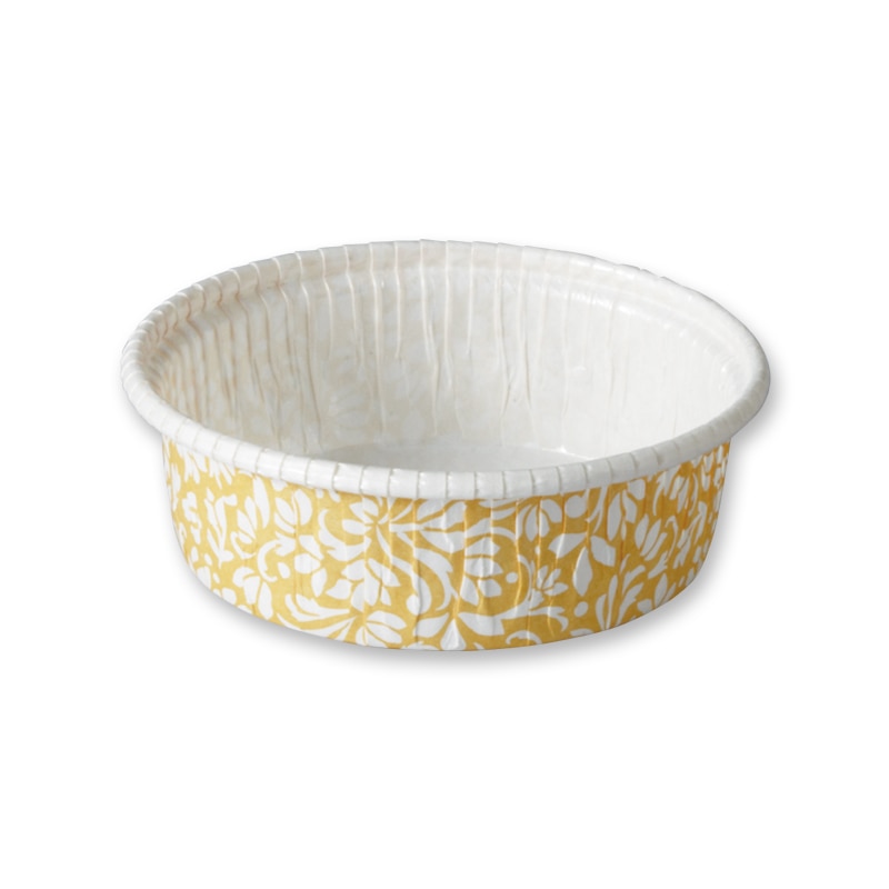 焼型不要で生地を入れてそのままオーブンで焼成可能です。PETをラミネートした1枚の紙をプレス成型しており、水漏れがありません。焼菓子やデザートはもちろん、惣菜など食品全般にお使い頂けます。蓋「カールカップ M1用PET蓋FCR03」は別売です。●オープン使用可●耐油性:あり●耐水性:あり●容量:110cc●重量:2.90g●入数:100枚