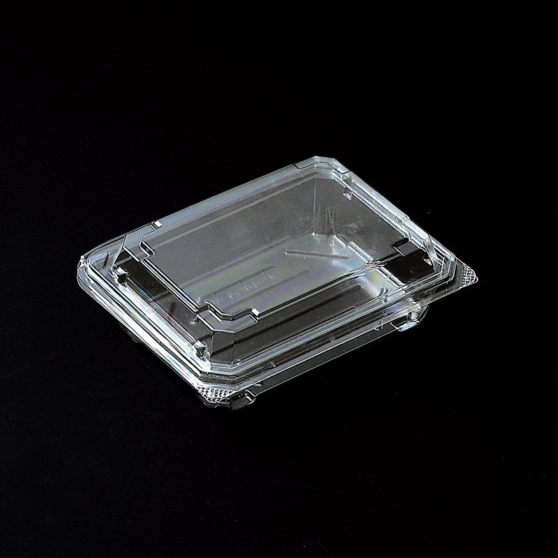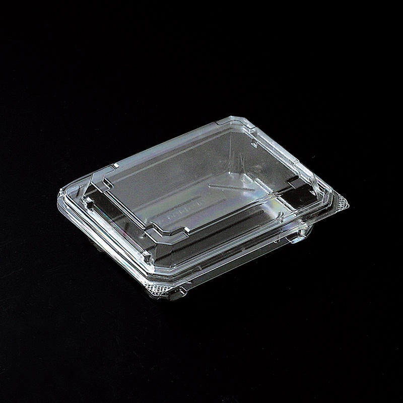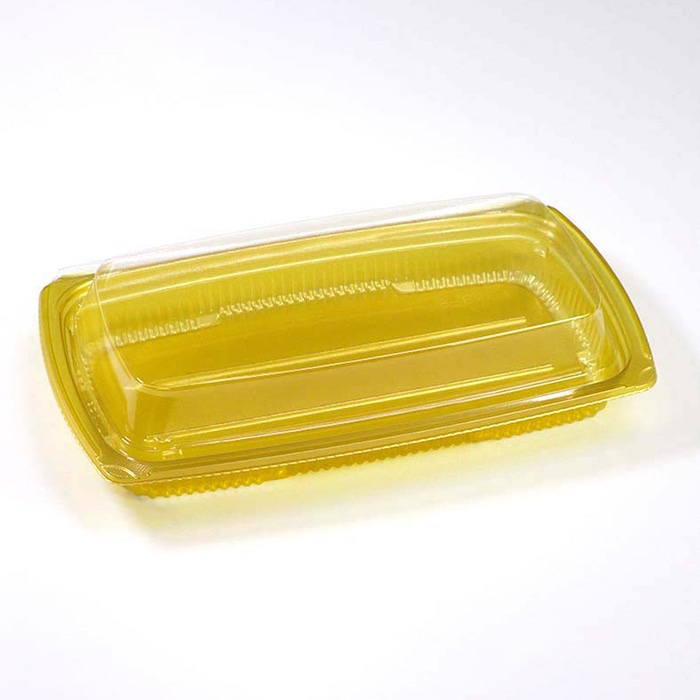 折り蓋式の一般的な食品容器です。生鮮品をはじめ、お惣菜や日配品の商品づくりにも鮮度感の演出に最適です。パチンと閉まる簡単なかん合で、作業性は大幅に軽減されます。●電子レンジ使用可●オーブン使用不可●耐油性:あり●耐熱温度:110℃●入数:50枚