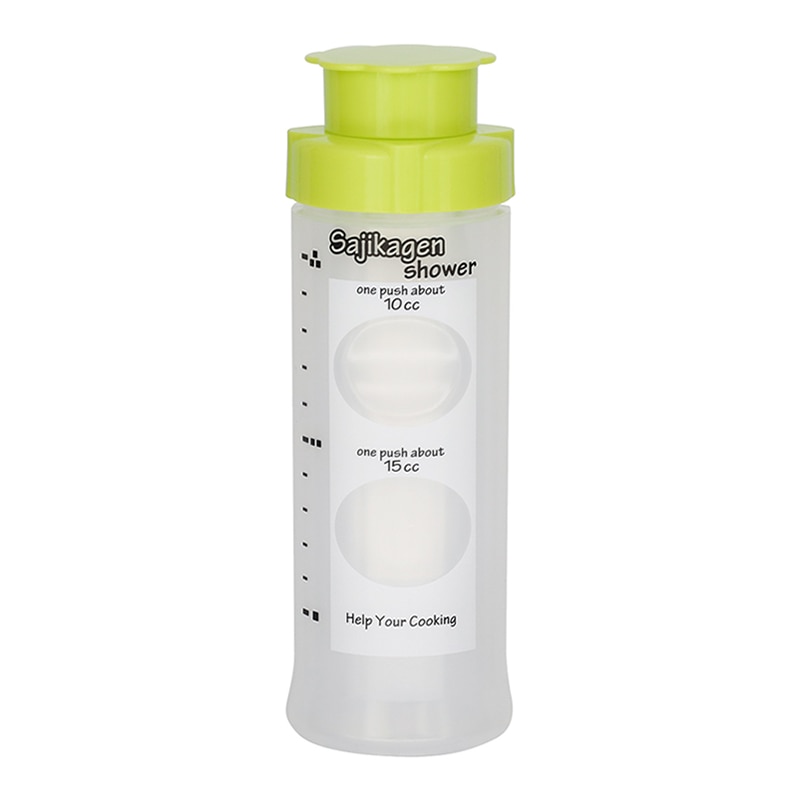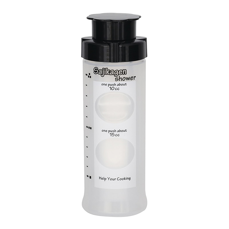 ワンプッシュで計量しながらタレをかけられ、時短とコスト削減が図れるディスペンサーです。細く均一にかけられる5穴タイプ。プッシュの場所で約10cc(小さじ2)と約15cc(大さじ1)が選べます。丼のタレ、かき氷シロップなどに便利です。片手でワンプッシュするだけで簡単に定量が出せるので作業効率アップ。計量スプーン等の洗い物が減るのも嬉しいポイントです。誰でも定量が出せるので味のバラつきを防ぎます。出し過ぎ防止にもなりコスト削減につながります。計量筒をはずせばマヨネーズやケチャップも使えます。※食器洗い乾燥機使用不可。●容量:360ml●重量:73g