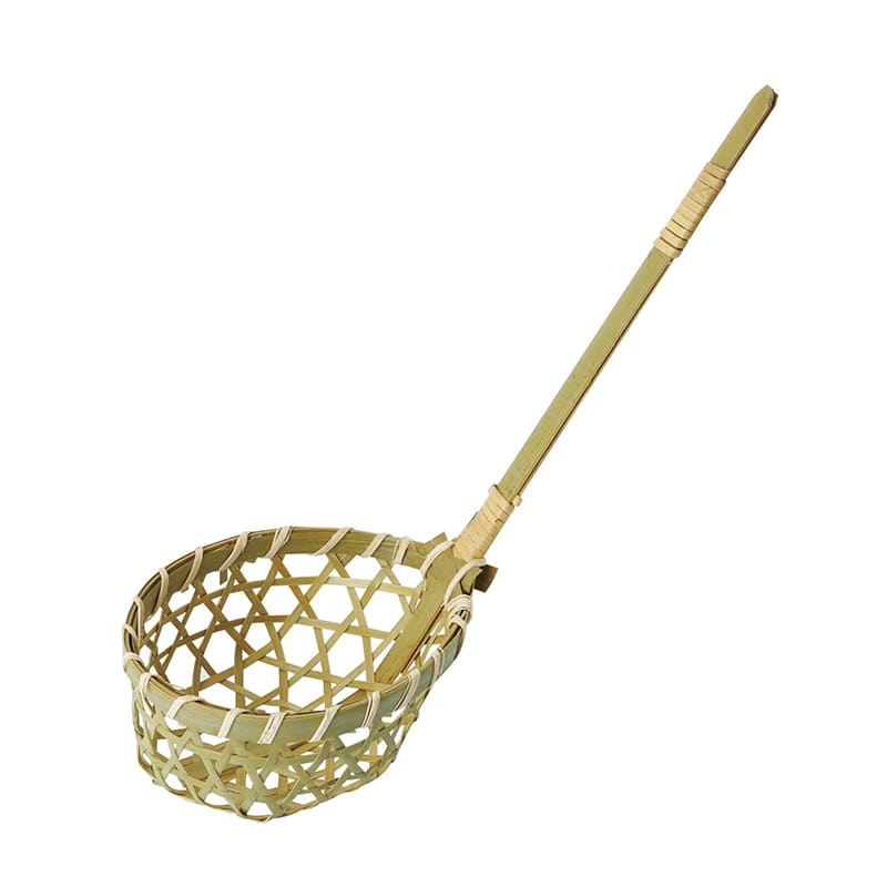 ハンドル裏のフックを使用して鍋のフチなどに引掛けて使用します。ハンドル上部のフックを使用してフードやパイプ棚にかけることも可能です。ハンドルは天然木を使用。滑りを防止しスムーズな湯切りが可能です。てぼの中で麺が動きやすく均等に茹でることが出来るためラーメンに向きます。また湯切りもスムーズです。