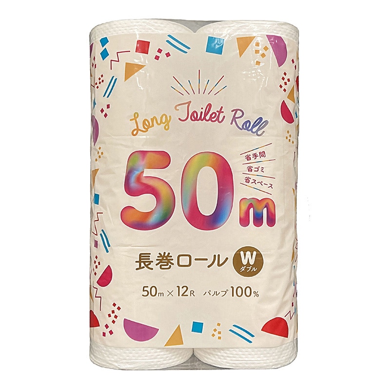 トイレットペーパー 長巻きロール ダブル 50m 12ロール/パック(ご注文単位6パック)【直送品】