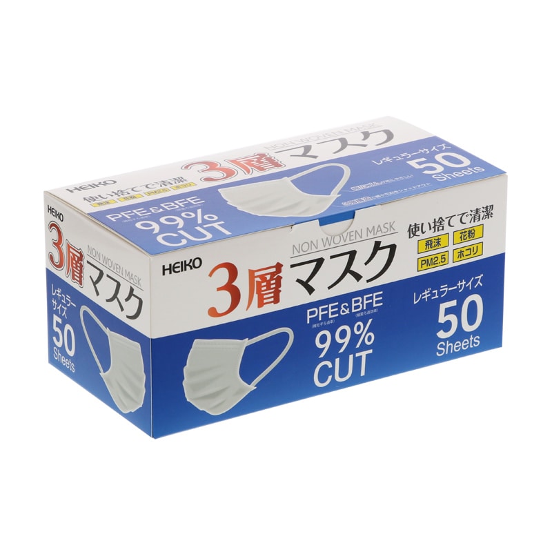 HEIKO 不織布3層マスク レギュラーサイズ 1箱(50枚)