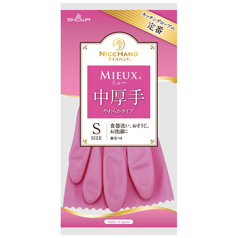 ショーワグローブ ゴムグローブ ナイスハンド ミュー中厚手 S ピンク 1組