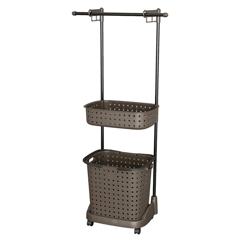 JEJアステージ レクエア ランドリーバスケット 2段 ダークブラウン 1個(ご注文単位4個)【直送品】