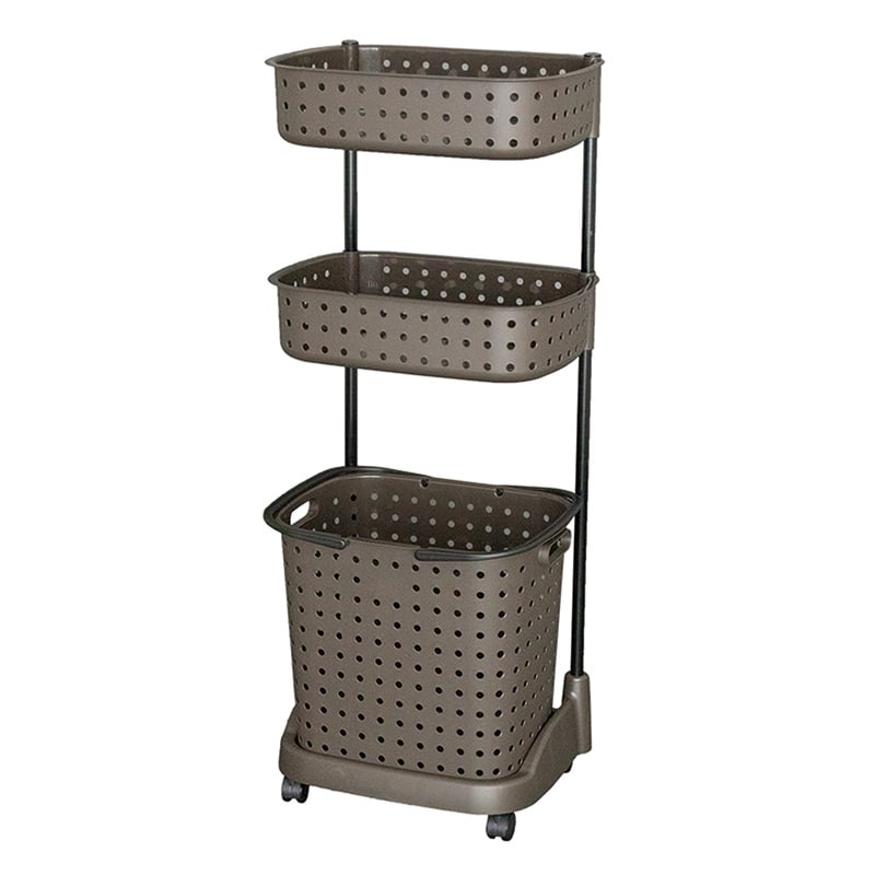 JEJアステージ レクエア ランドリーバスケット 3段 ダークブラウン 1個(ご注文単位4個)【直送品】