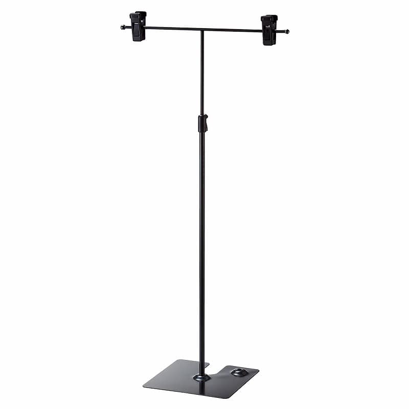 両面にポップを掲示できるT型の卓上スタンド。ワンタッチレバーで高さ調整可能です。クリップは取り外し可能。ポップに合わせて位置を調整できます。T字型で両面掲示も可能。●5mm厚までのポップをご使用いただけます。支柱の位置はセンター、コーナーどちらでも使い分けることができます。●お客様組立て+ドライバー必要