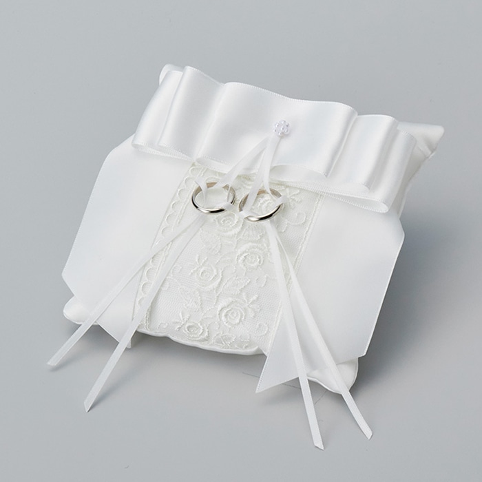 ブライダル向けのリングピローです。●外箱:白化粧紙かぶせ箱(「Wedding Ceremony」マーク入)