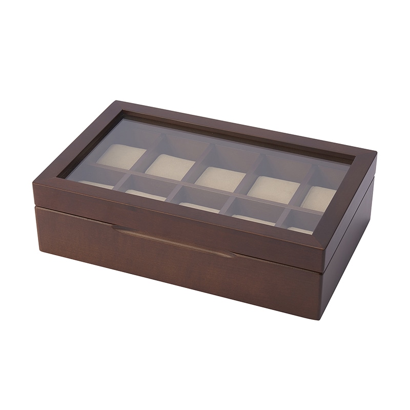木製のしっかりとしたウォッチケースです。大切な時計コレクションを整理して収納できます。コレクションに便利なシースルータイプ。時計を巻いた状態で収納できます。