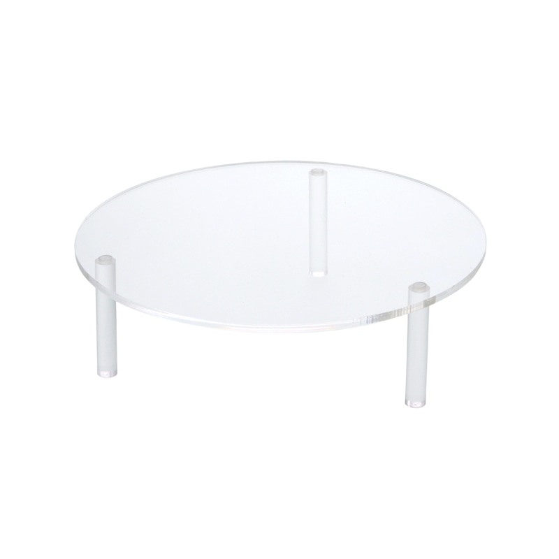テーブル脚をねじ込むだけで組み立てできるアクリル製の丸テーブルです。小物・アクセサリー・フーズ等幅広いディスプレイに最適です。別売りの他サイズと組み合わせるとより立体的で効果的な演出が出来ます。