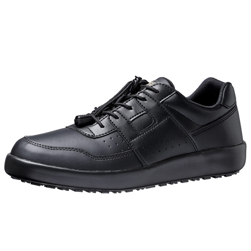 水や油、洗剤など滑りやすい床面での作業に適した滑りにくいハイグリップソールです。ストッパー付きの靴ひもで、結ぶことなく締め上げが可能です。交換目安が分かる「スリップサイン」付で、靴底のすり減りによる耐滑機能低下をお知らせします。●標準重量(26.0を基準):620g/足