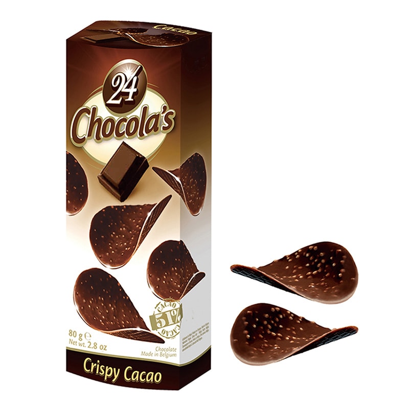 チョコレートを薄く伸ばし、そのままカールさせたチョコチップス。サクサクとした食感のクリスプが織りなす新食感をお楽しみください。51%カカオ配合のダークチョコレート。