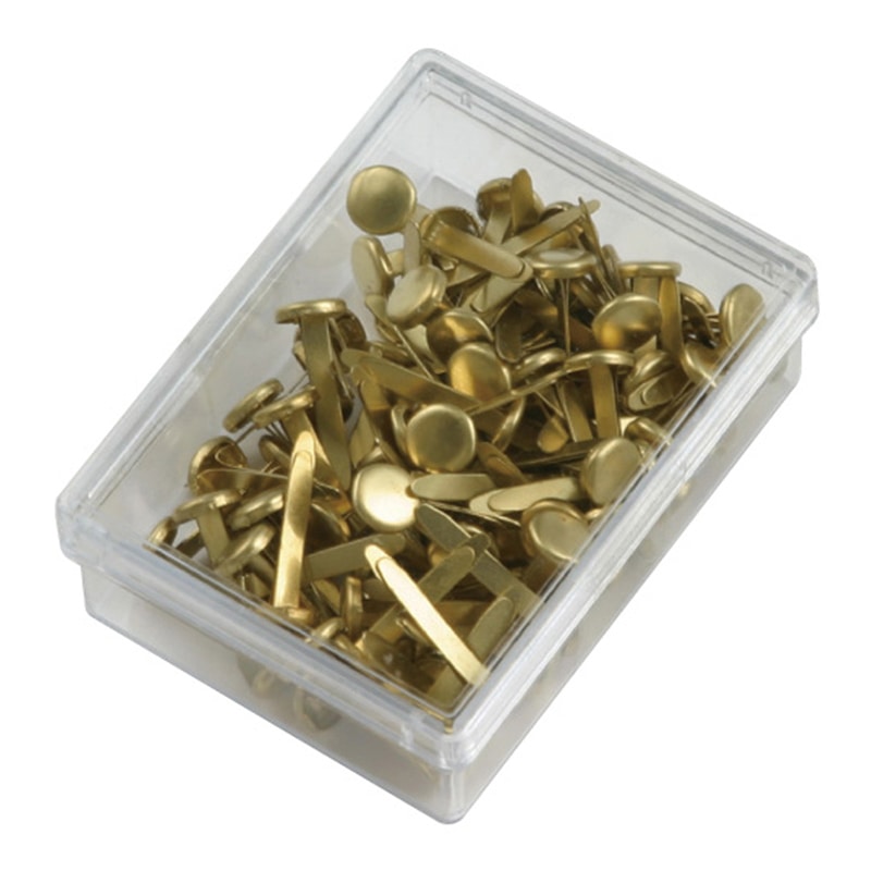 綴じ穴の裂けを防ぎ用途はいろいろ 真鍮製で長さは16.5mmパンチ穴差し込み、足を開くだけで書類や資料のファイリングができます。又、工作の材料としてよく使われています。 ●色:ゴールド●サイズ:φ8×16.5mm●足の長さ:14mm●材質:真鍮●入数:100本※メーカーの都合により、パッケージ・仕様等は予告なく変更になる場合がございます。