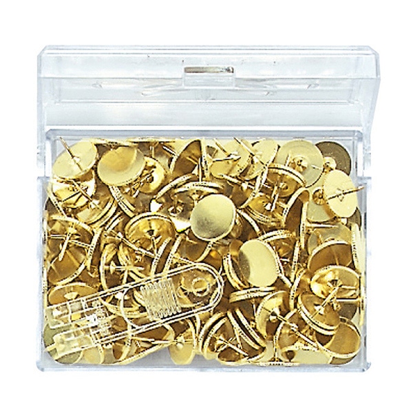 押し易さをを追求し、押部が凹型の画鋲です。画鋲抜取器付き。収納に便利な約500本PPケース入り。●カラー:表面真鍮メッキ(ゴールド)