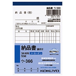 コクヨ 伝票 NC複写簿 ノーカーボン3枚納品書 B7タテ型 ウ-366 1冊(50組)