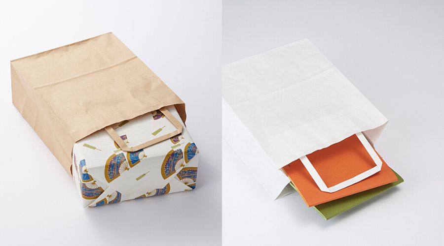 紙袋は頑丈で自立するため、本やお土産などの貸し出しや差し入れに便利です。かわいい柄の紙袋だと少し特別感が出ます。