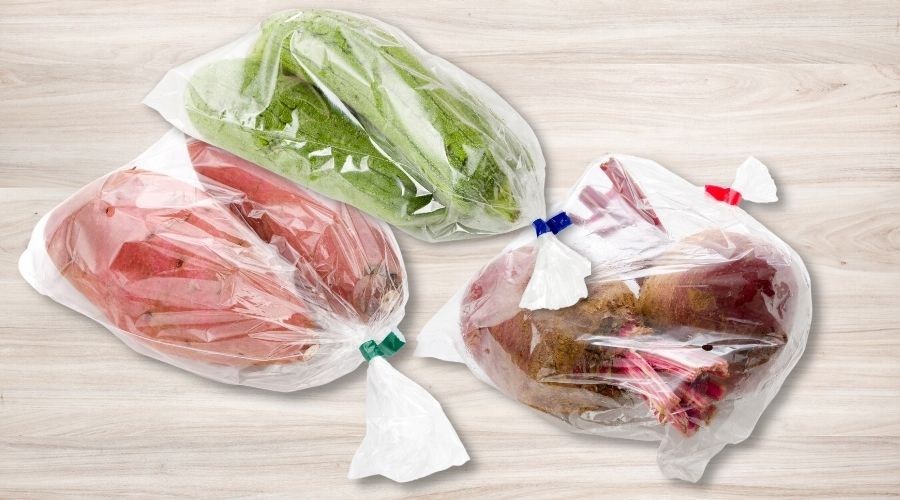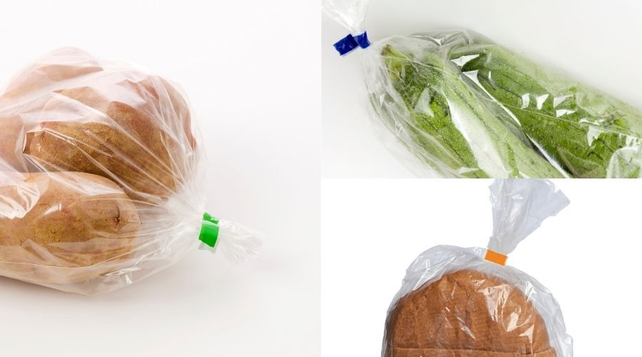 最も一般的にみられるのが野菜の袋をバッグシーラーテープでとめる使い方です。見分けにくい野菜の見分けに色違いのバッグシーラーテープを使ったりすることもできます。