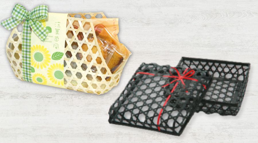 竹かごの種類とギフト包装の仕方についてご紹介いたしました。中がよく見えてシンプルなデザインは、お菓子やハンカチ、せっけんなど、いろいろなギフトに使えるので、この記事を参考に、使用シーンにぴったりな竹かごを見つけてみてください。