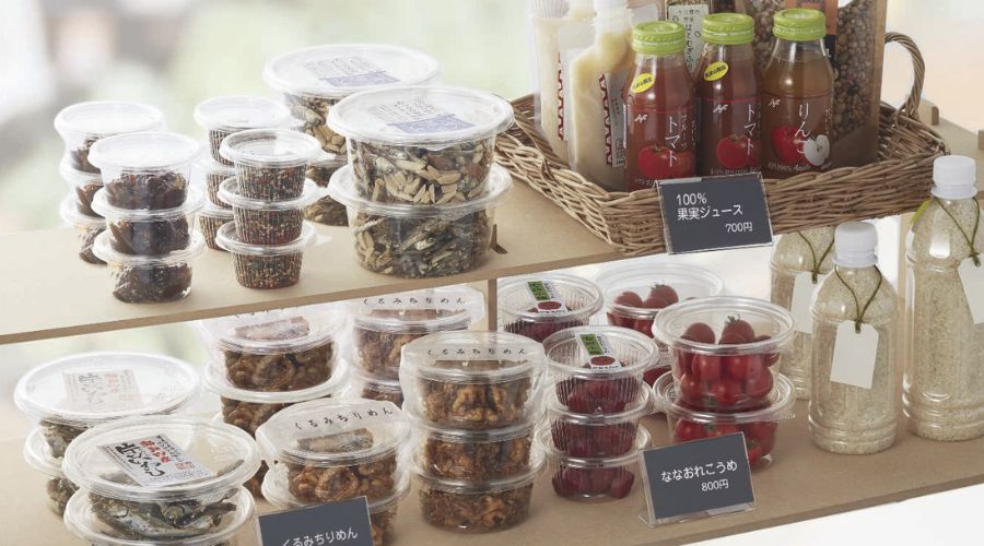 バイオカップは、サイズのバリエーションが非常に豊富なことも特長のひとつです。ドレッシングやタレを入れられるような小さいものから、パワーサラダやどんぶりものにも使える大きいものまで揃っています。また、同じ内容物でも、たとえば1~2人用と3~5人用など、容量によって容器を使いわけることで、お客様が選びやすいように工夫をすることもできます。