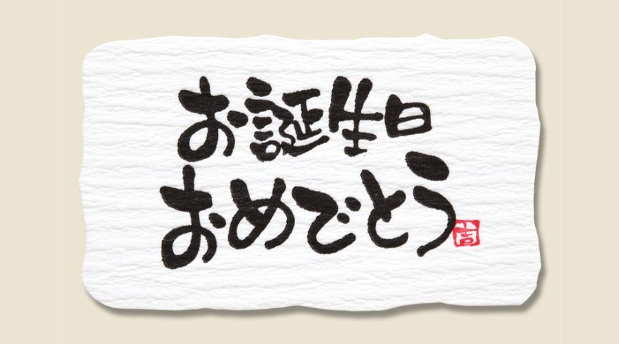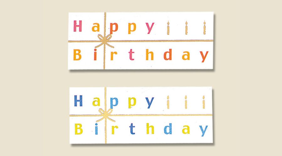 和風なプレゼントや、小さなお子様へのラッピングには、「お誕生日おめでとう」といった日本語表記がおすすめ。日本語表記の場合、フォーマルな印象を持たれることもあり、上司や目上の方、またはあまり親しい関係でない相手にも使いやすいデザインです。