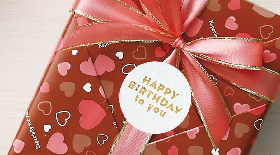プレゼントを包装紙で包んだら、仕上げにバースデーシールを貼ってみましょう。リボンをかけている場合は、リボンの上から貼ることで、リボンが動いたりずれたりするのを防ぐ効果もあります。