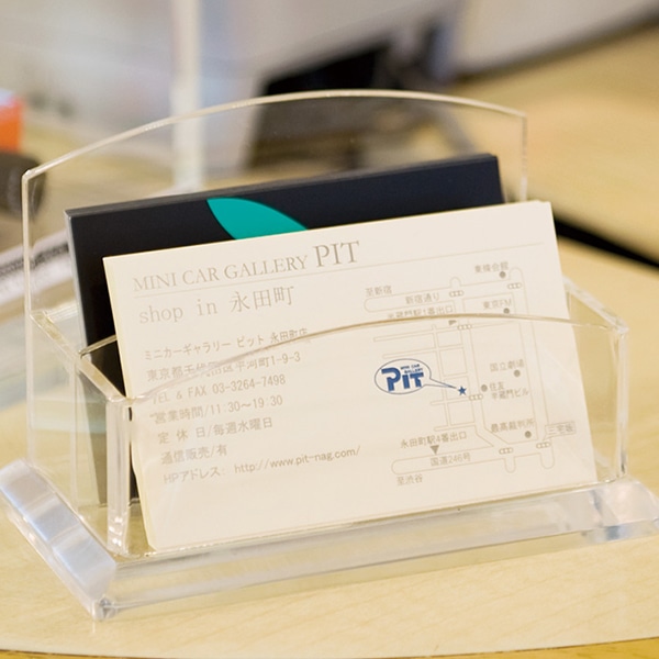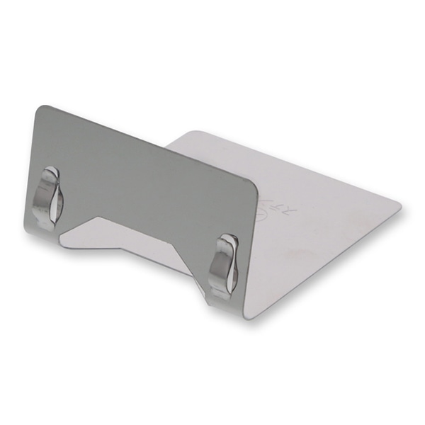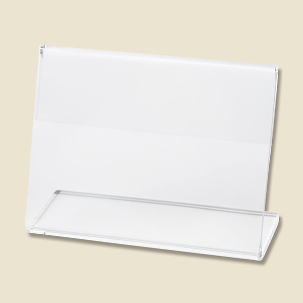 L字型のカードスタンドは、Lの字の内角を狭めた形状をしています。比較的オーソドックスな型で、展示などのカード掲示などでよく目にします。少し面が上を向いていることで、自然に視界で捉えやすいです。