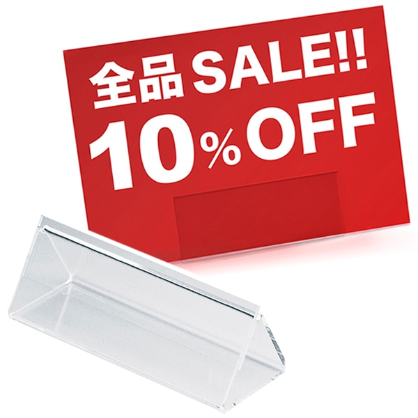 透明な見た目と耐久性の高さが特長のカードスタンドです。耐水性が高く水や汚れに強いため、POPをしっかり保護できます。シンプルで使いやすく、幅広い使い方が可能です。