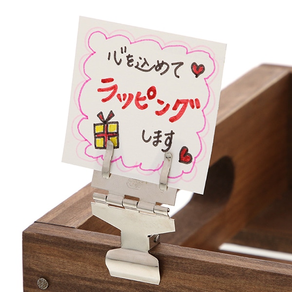 クリップ型のカードスタンドは、スタンド型と類似していますが、その土台となる部分がクリッピングできるという点が違います。器や薄い板にクリップ部位を装着することで、平面でない場所にも設置することが可能になります。