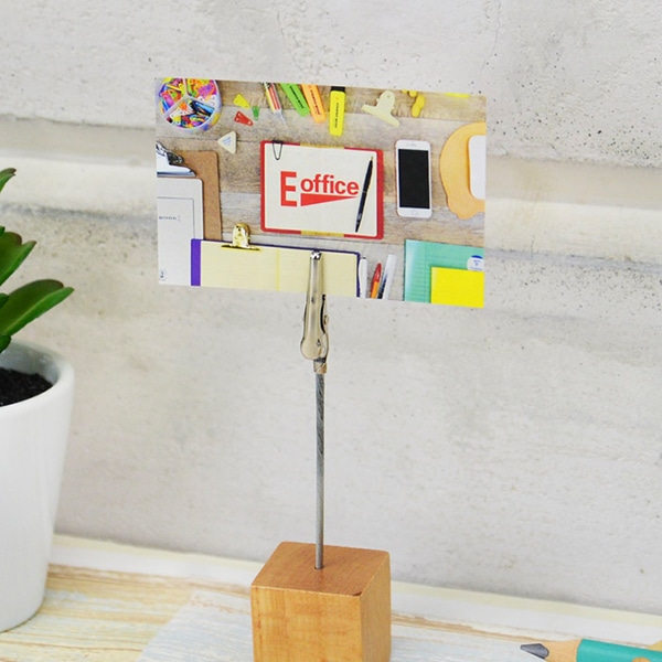 素材選びは、カード立てを置く場所に応じて行いましょう。カード立ての素材には多くの種類が用意されています。例えば、耐久力があり水に強いアクリル製、おしゃれに飾ることができる金属製、ナチュラルなインテリアに合う木製など。カード立てを置く場所が木製であれば、同じく木製が適切で馴染みやすいでしょう。メラミン化粧板系のテーブルに置くとすれば、金属製やアクリル製がぴったりです。このように、カード立ての素材にはさまざまなバリエーションがあります。お客様がお求めになる耐久性や、カード立てを置く場所のインテリアに合うものをお選びください。