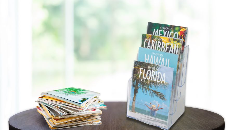 定番のアクリル製は、丈夫で水に強いのが特徴。たくさんのチラシやカタログを美しく、しっかり支えてくれます。