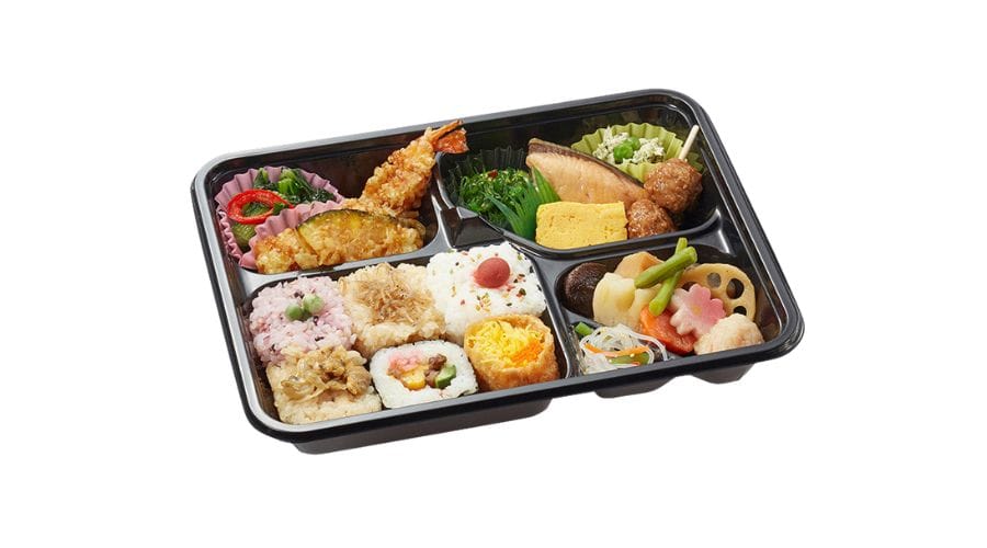 仕出し・高級弁当容器とは、会議やイベント、冠婚葬祭などに使用される仕出し弁当や高級弁当の容器です。プラスチック製や紙製など、様々な種類がございます。多様なデザインであらゆるメニューに対応することができ、汎用性が高い弁当容器です。