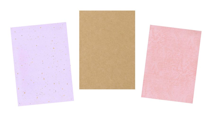 印刷用カラーペーパーは通常の印刷用紙とは違い、用紙に柄や色がついていたり、加工がされている紙のことです。エンボス加工がされており高級感のあるものや、金箔がちりばめられているもの、和柄や花柄のものなど種類があります。サイズも一般的なものは、A4やA3、はがきサイズなどで、ミシン目の入っているものもあります。
