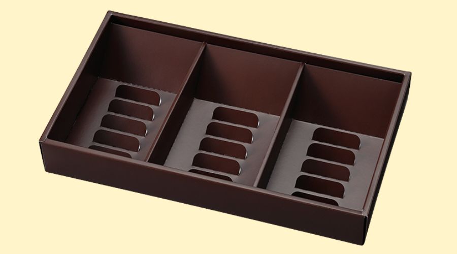 クッキーやラングドシャなどの薄いお菓子を個包装して詰める際には、底に細かい仕切りがたくさんついた箱がぴったりです。仕切りに合わせて等間隔に並べて入れることで、クッキーが割れてしまうことも防ぎます。