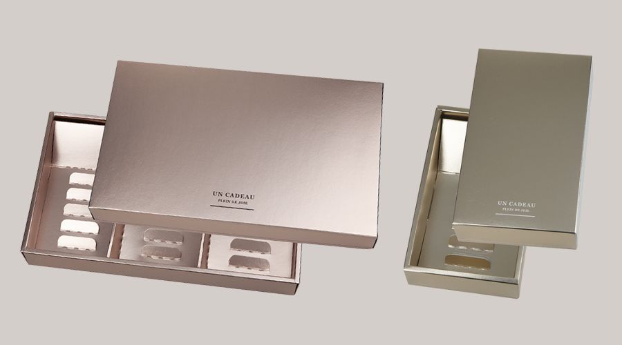 高級感や上品な雰囲気を演出したい方には、光沢のあるシルバー素材で作られたクッキー箱がおすすめ。スタイリッシュさも感じられ、存在感を発揮します。