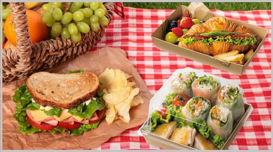 未晒紙ボックスはおしゃれなお弁当容器としても人気が高まっています。バスケットやカントリーなチェック柄とも相性がよく、使い捨て容器なのでそのまま捨てられるのも便利なポイントです。