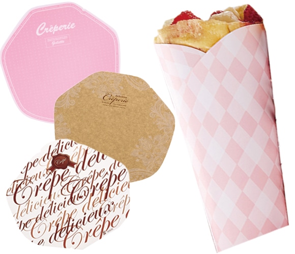 少し変わった形をした、目を引くタイプ。七角形のものは包むだけでおしゃれな仕上がりになるだけでなく、クレープを巻きやすい形です。