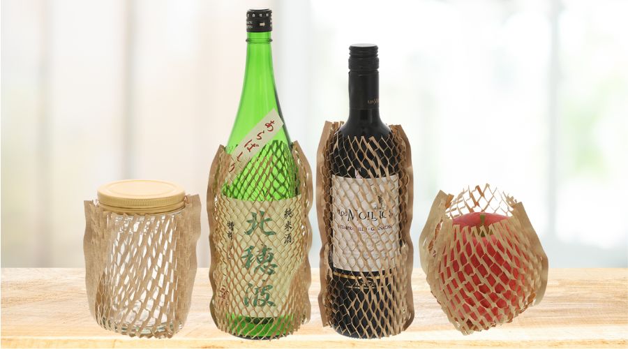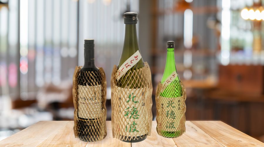 ワインやシャンパン、日本酒、調味料などの瓶を包むのにおすすめクッションペーパーです。網目状になっているのでプラスチック製の緩衝材などと比較してラベルが見えやすく製品の確認ができるので、誤出荷を防ぐことができます。