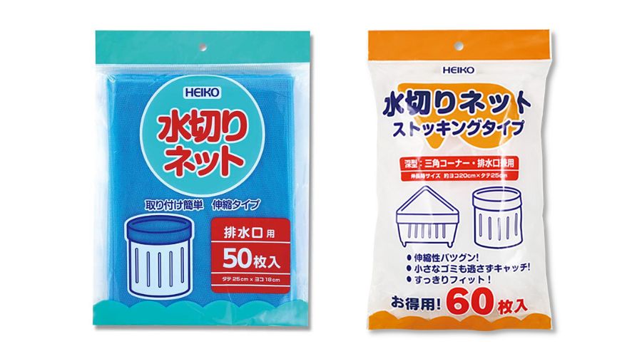 細かいゴミもキャッチできる「ストッキングタイプ」や、「不織布タイプ」、水きれが良く、伸縮性のある「ネットタイプ」などの種類があるので、用途によって選ぶとよいでしょう。ポリ袋に穴が開いている自立式の「水切りポリ袋」や、ぬめりや油分を吸着するものもあります。