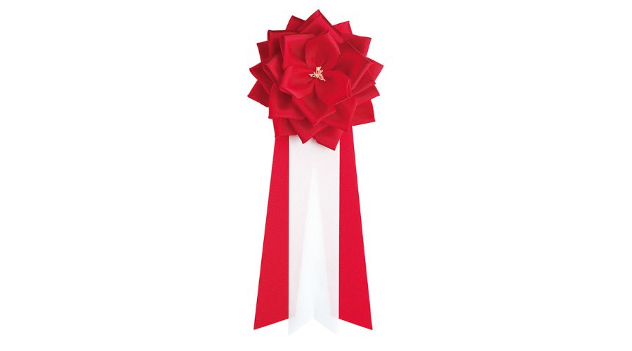 徽章(きしょう)とは、入学式や卒業式といった式典で参加者が胸元につけている飾りを指します。2枚タレや3枚タレ、花の大きさや色などその種類は様々です。参加者の中でも登壇者や受賞者が大きめの徽章をつけたり、登壇しない来賓の方は大きさを統一したりするなど、慎重に選ぶ必要があります。