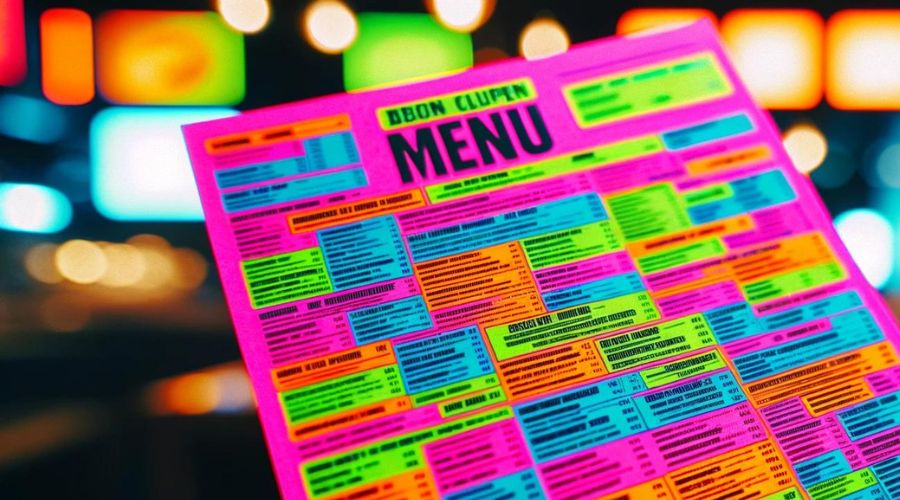 飲食店では、メニューの表示に蛍光ポスターを活用することがあります。蛍光色を用いることで、メニューの内容が一目でわかり、お客様の注目を集めやすくなります。特に期間限定のメニューやおすすめ商品のアピールに効果的です。