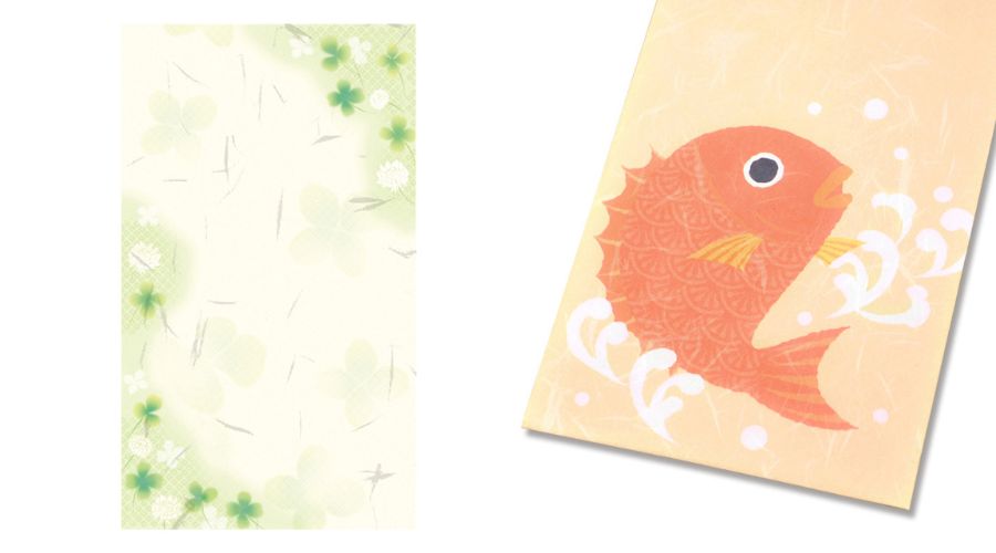 お年玉袋やポチ袋としてよく使用されます。縁起物である「鯛」や「富士山」、「だるま」などが印刷されていることが多いです。