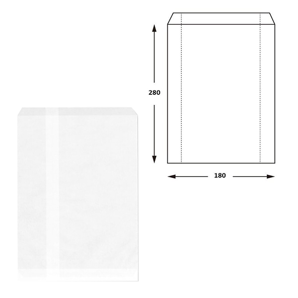 グラシン袋の形状は、マチなしの平袋タイプや、中身をよりたくさん入れることができるマチつきタイプのものなど、主に2つの形状があります。形状によって詰められる量も変化していきますので、それぞれ使う用途や入れる量に合わせて最適な形状をお選びください。