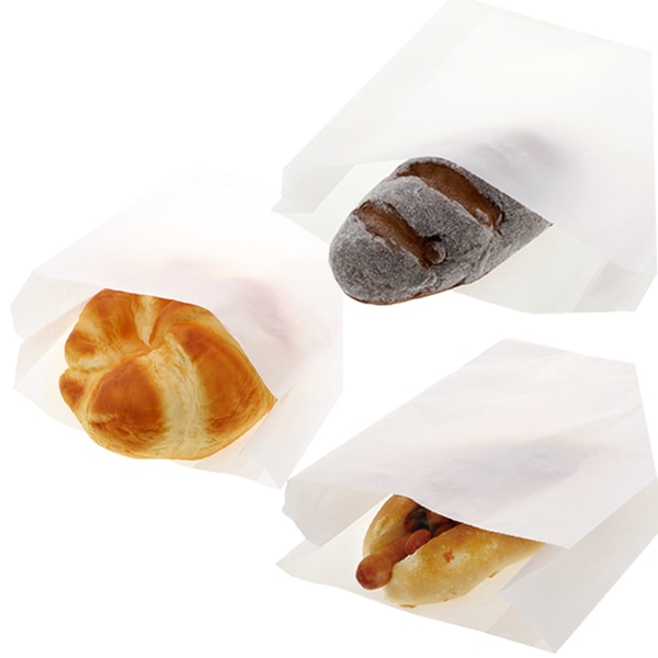 グラシン袋とは、亜硫酸パルプを加工したもので、透明度が高く光沢があるとともに、独特のバリバリ感とフロスティな透け感が人気の商品です。また、滑らかで耐油性・耐水性に優れているため、洋菓子店やベーカリーショップ、製菓店といった食品を扱うお店での使用や、雑貨やアクセサリー等のアパレル小物を入れる際に使用されております。このように幅広く使用することが可能で、高級感のある商品です。