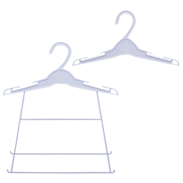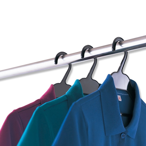 プラスチック製は軽くて何より安いです。使い勝手がよく便利であることから、主に衣類関係の業務シーンで多様されている流通ハンガーの代表格と言えます。